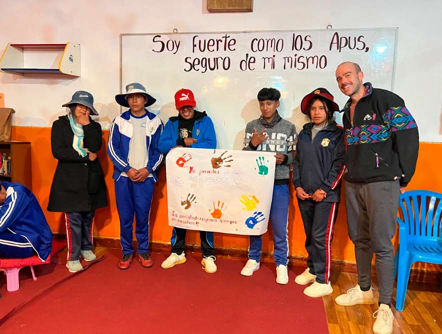 La primera semana fue intensa desde el minuto uno. Llegamos a Andahuaylillas y, casi sin aterrizar, comenzamos el Aula Experimental: cuatro días conviviendo en Ocongate con adolescentes de 15 y 16 años, poniendo en práctica dinámicas orientadas al desarrollo emocional.